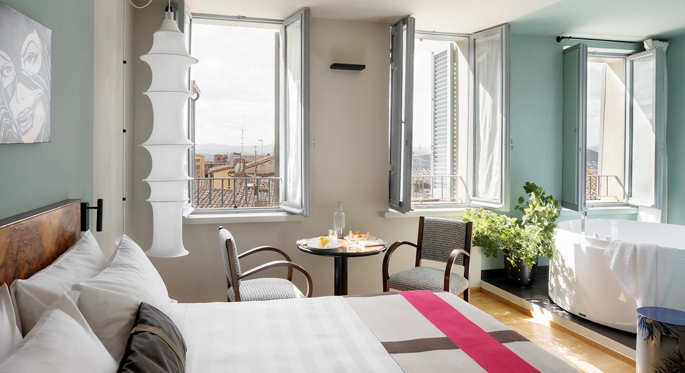 50 camere, un giardino segreto tra i tetti, un garage privato coperto: tutto contribuisce a renderlo un luogo unico, il luogo ideale dove soggiornare.